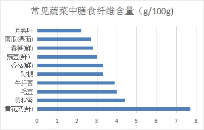 嫩莖、葉、花菜類蔬菜(如油菜、菠菜、西藍(lán)花)富含b-胡蘿卜素、維生素C、維生素B2、礦物質(zhì);葉類蔬菜的維生素含量一般高于根莖部和瓜菜類。蔬菜中的膳食纖維含量一般在2%左右。